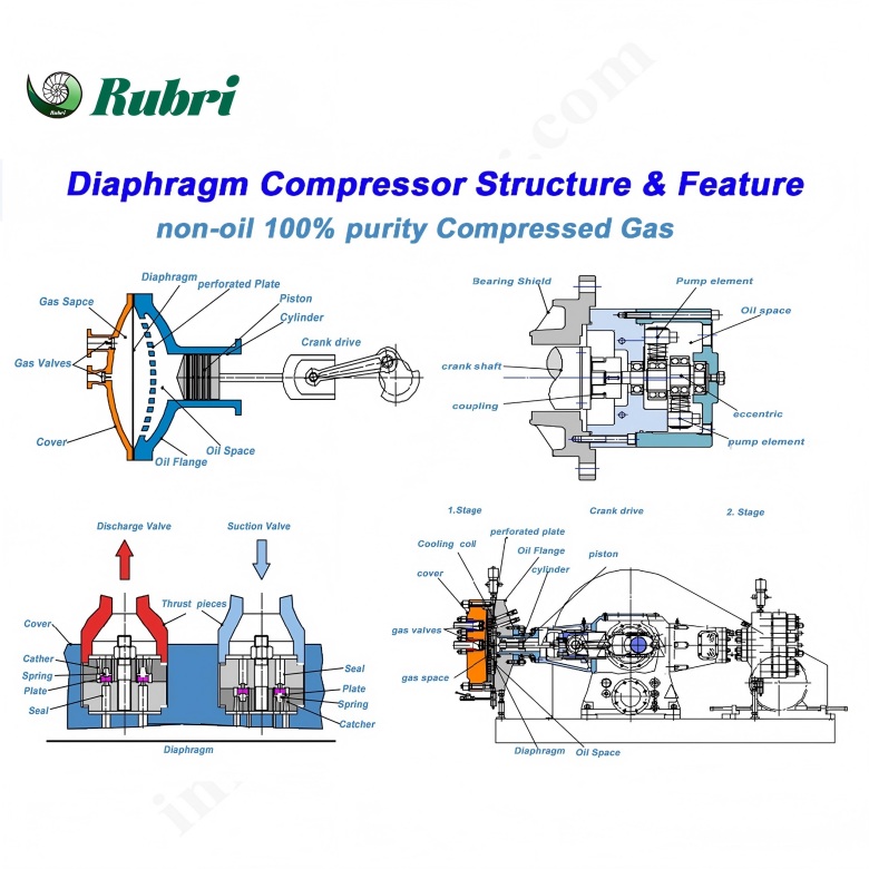 The diaphragm compressor has the characteristics of high single stage compression ratio,good sealing performance,compressed gas is not polluted by lubricating oil and other solid substances,so it is widely used in the food industry,petroleum industry,chemical industry,electronics industry,medical,scientific research and other fields.Specific uses include:flammable,oxidizing,toxic and radioactive gases,gas cylinder filing,gas mixing and agitating system,Filling and unloading of gas conveying and piping vehicles,chemical and petrochemical gas treatment  systems,gases used in the manufacture of electronics,gases,semiconductors and optical fibers,one-stop gas generation system for pressurization and gas