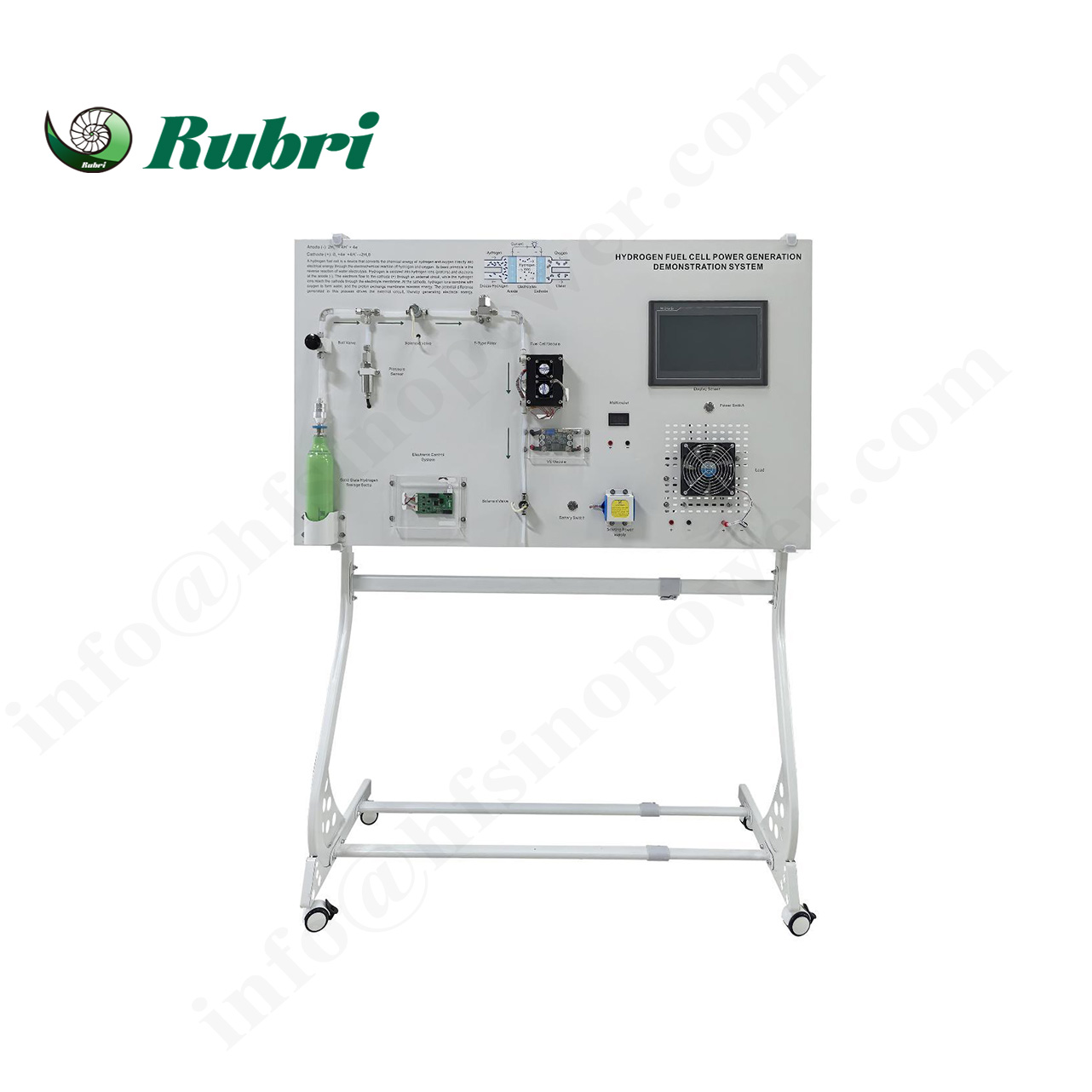 This system is a full-process teaching demonstration device for hydrogen fuel cell power generation designed for colleges and vocational schools. It integrates metal hydride hydrogen storage, fuel cell power generation, power management and load application modules, and fully demonstrates the core technology of hydrogen energy conversion into electrical energy. The system is based on proton exchange membrane fuel cell (PEMFC) technology, combined with low-pressure metal hydride hydrogen storage and intelligent monitoring system. It is safe and reliable, and is suitable for experimental teaching and scientific research exploration in new energy, chemical engineering, electrical automation and other disciplines.